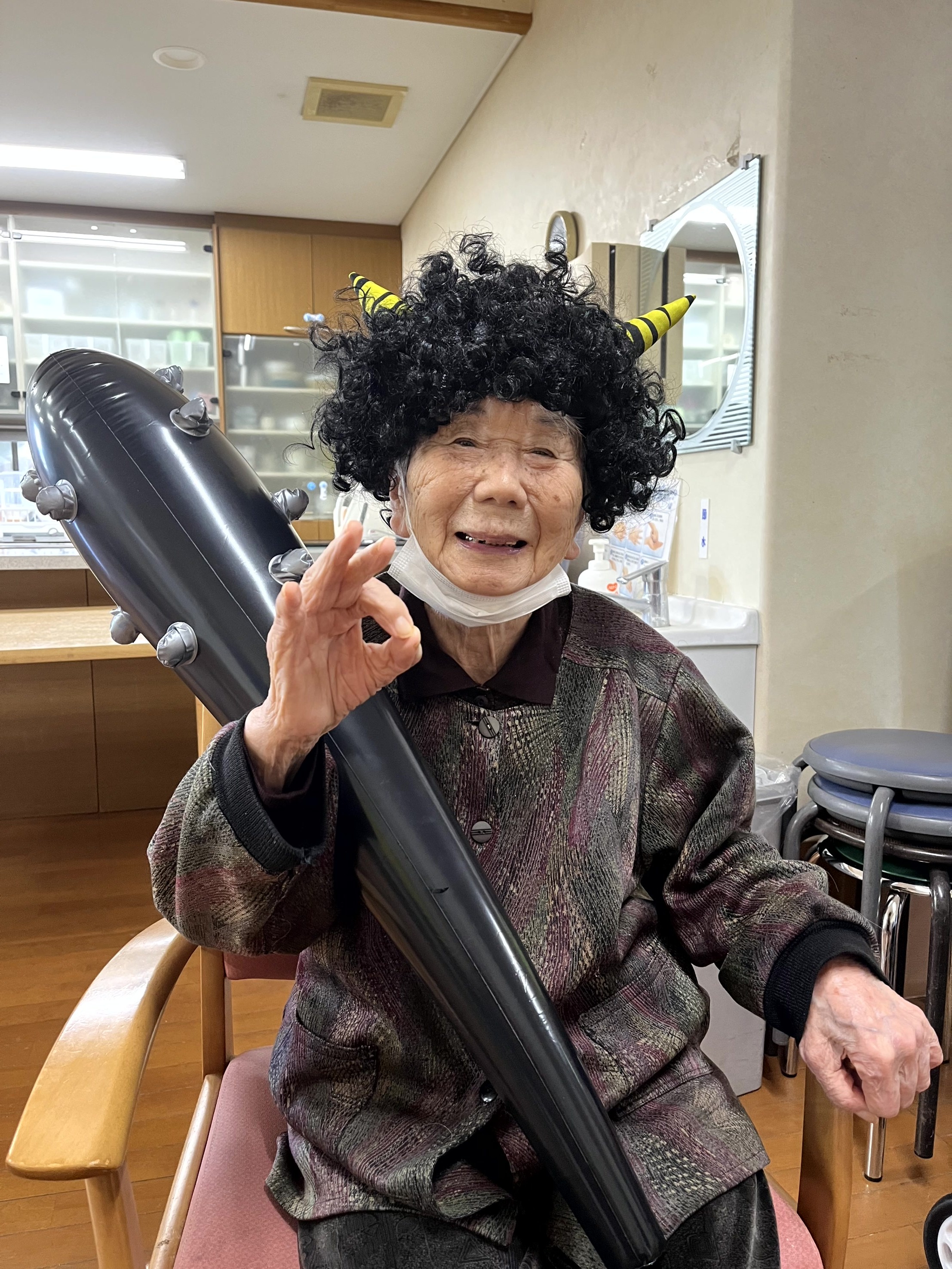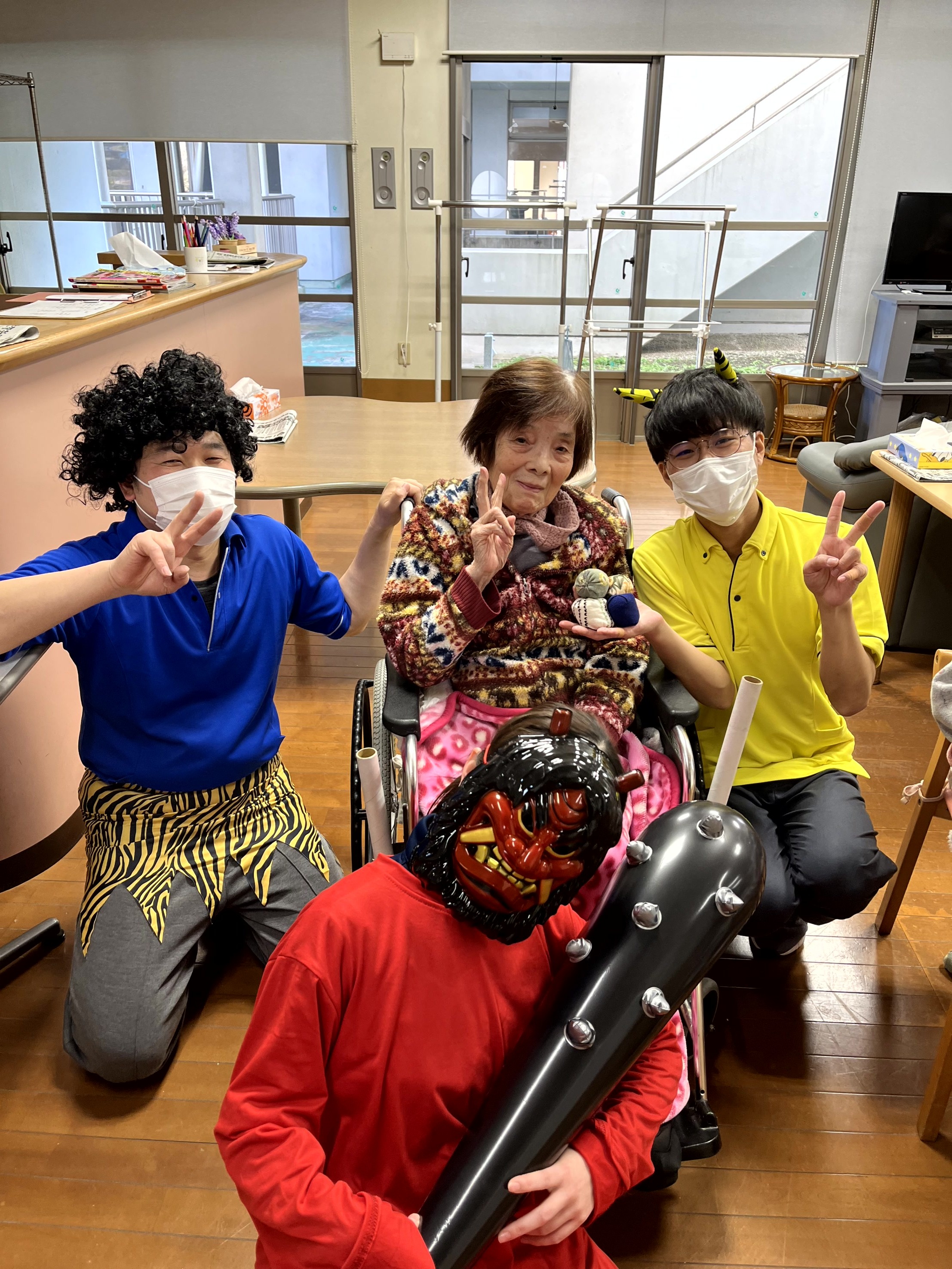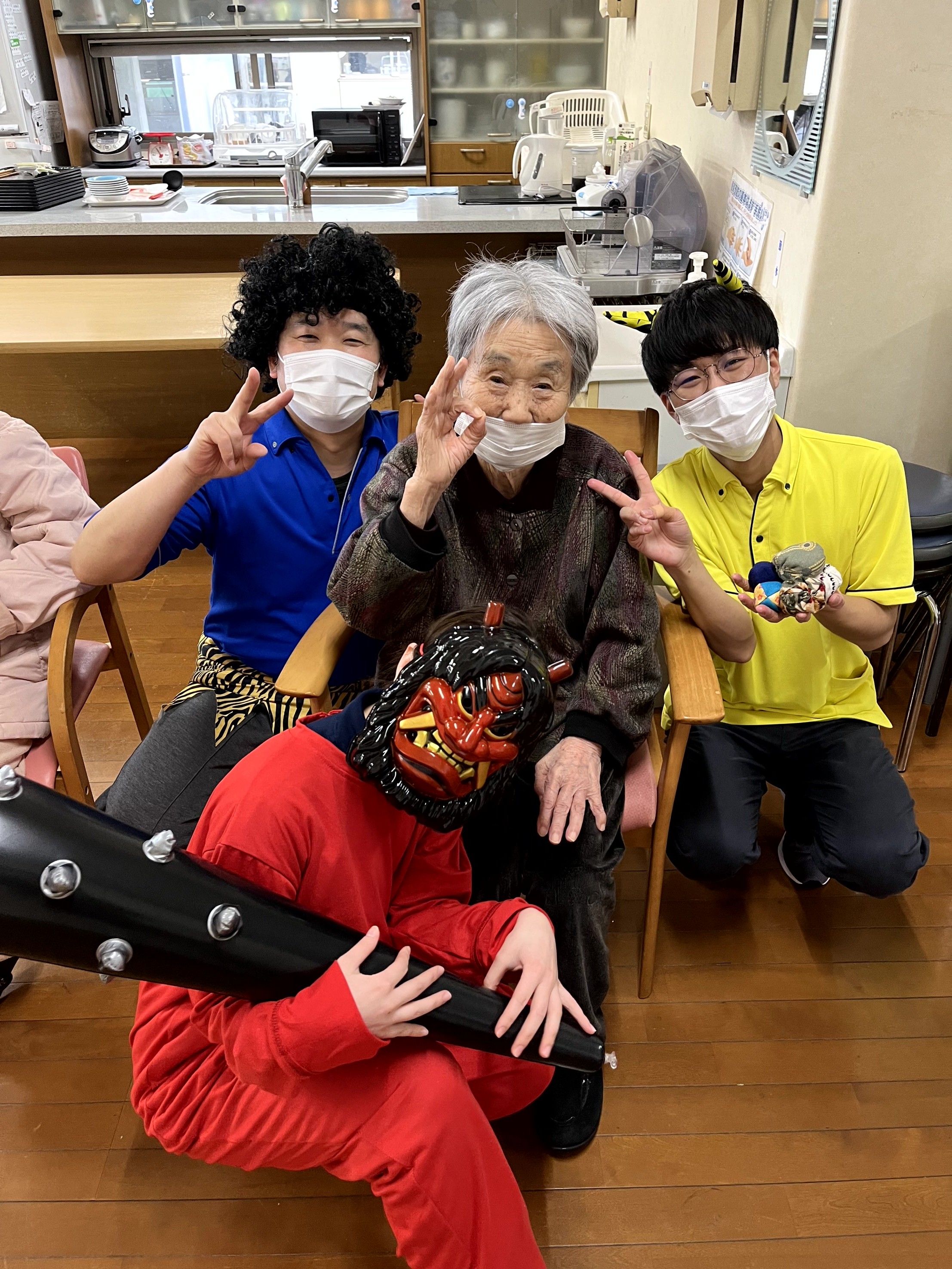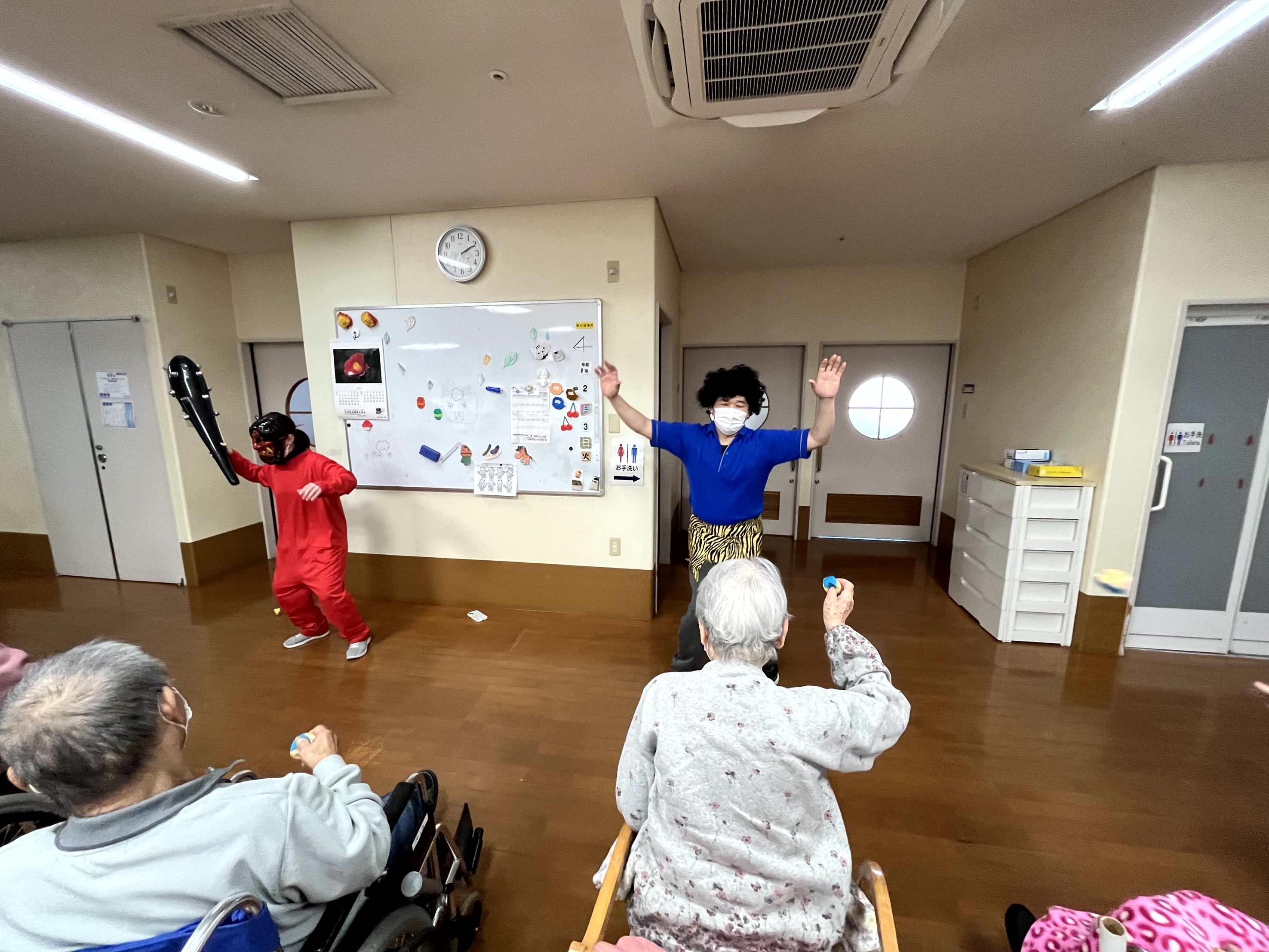 午後からは当施設にも赤鬼と青鬼、黄鬼がやってきました。